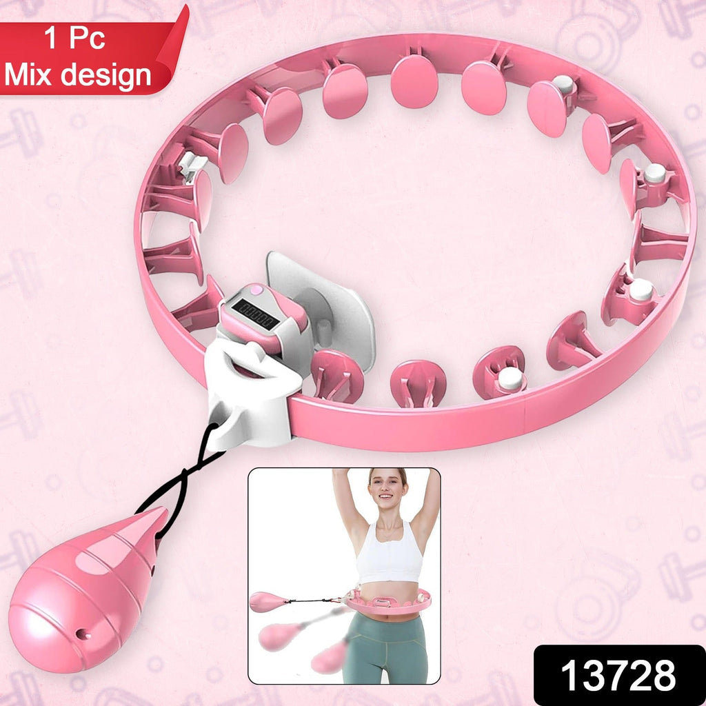 Smart Fitness Hula Hoops Non-Fall Exercise Detachable Hoola-Hoop with Ball and Intelligent Counter, Size Adjustable Freely, Suitable for Adults Weight Loss Fitness Exercise (1 Pc / Mix Design / Loose)