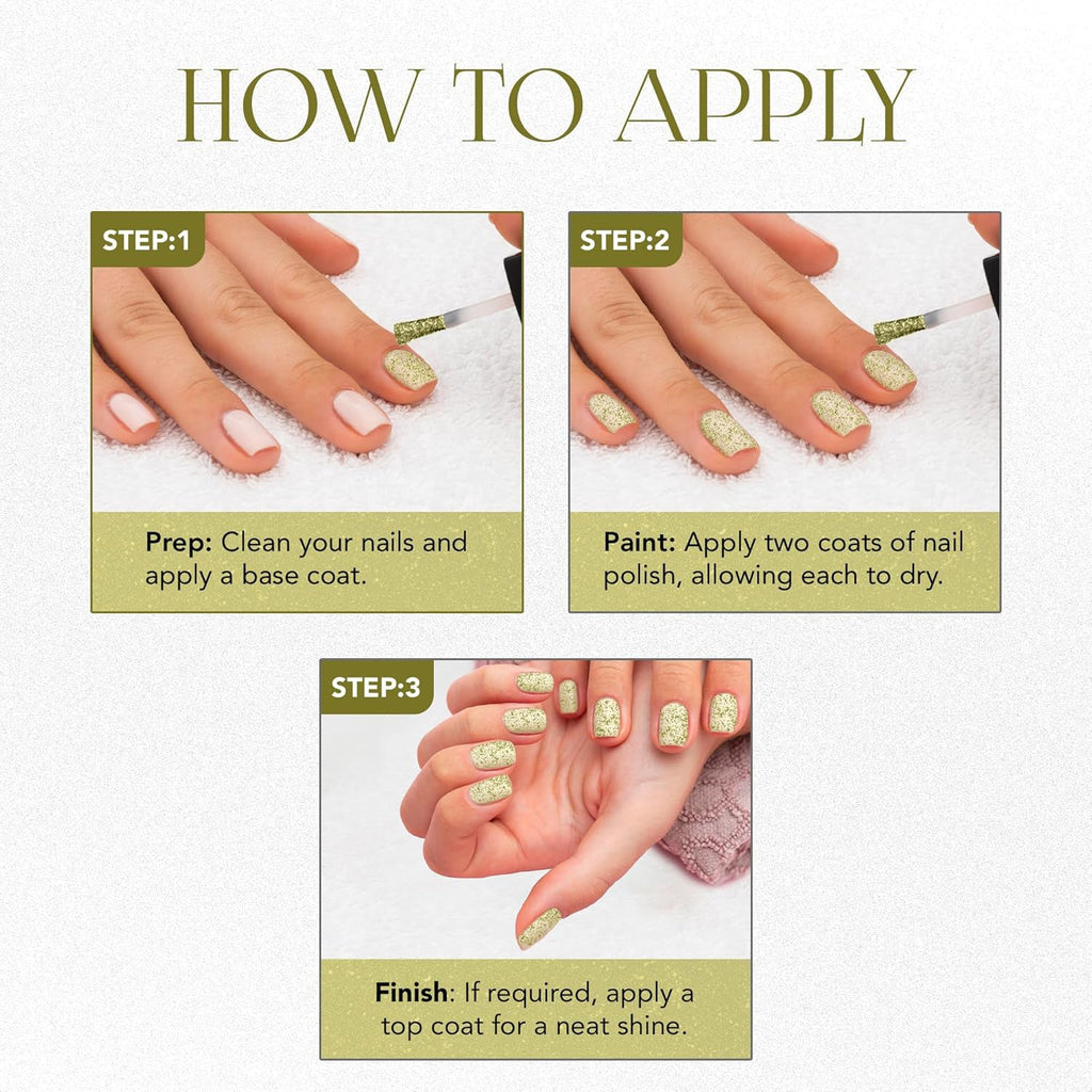 • Glitter Nail Paint with a sparkling, glamorous finish.