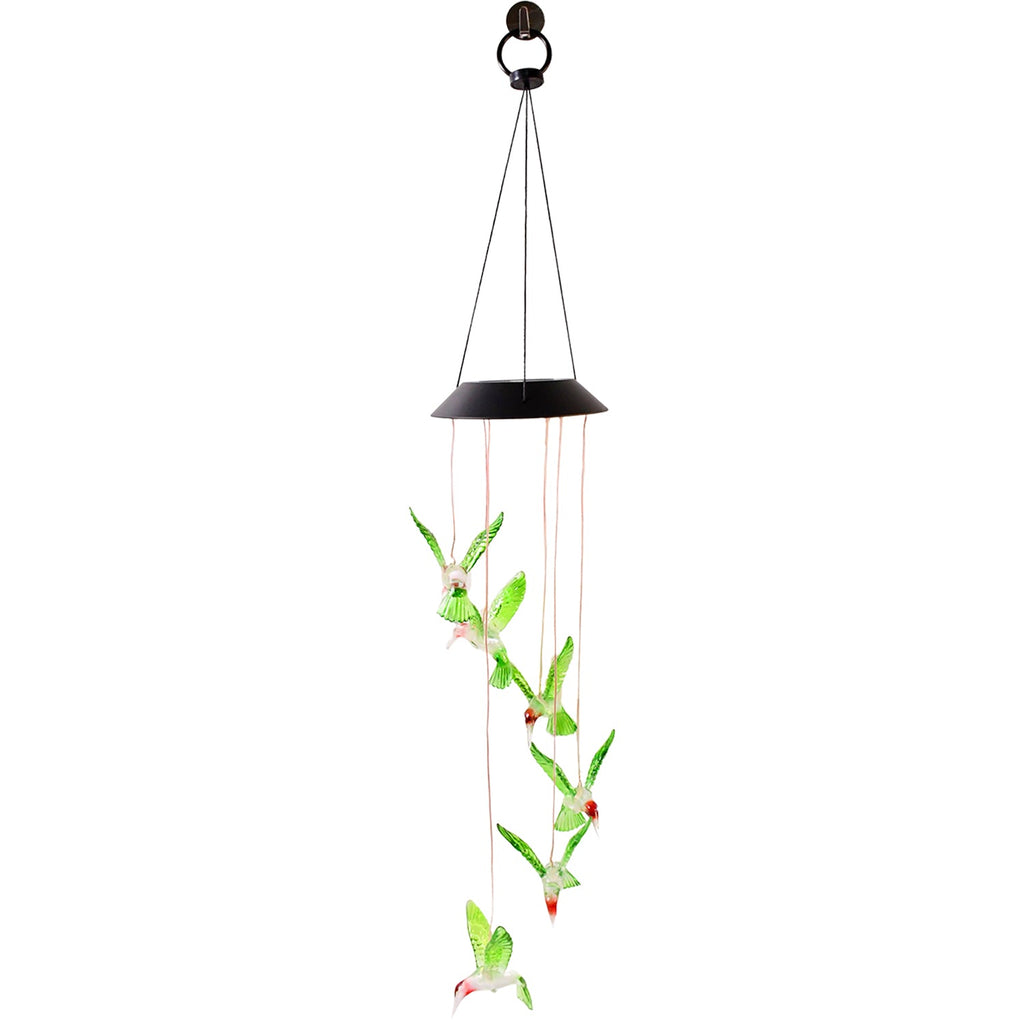 Hummingbird solar light , Solar hummingbird wind chime , LED hummingbird garden light , Hanging solar hummingbird light , Color-changing hummingbird light , Solar light gift idea , Cute solar gift , Backyard solar decoration , Waterproof solar garden accessory